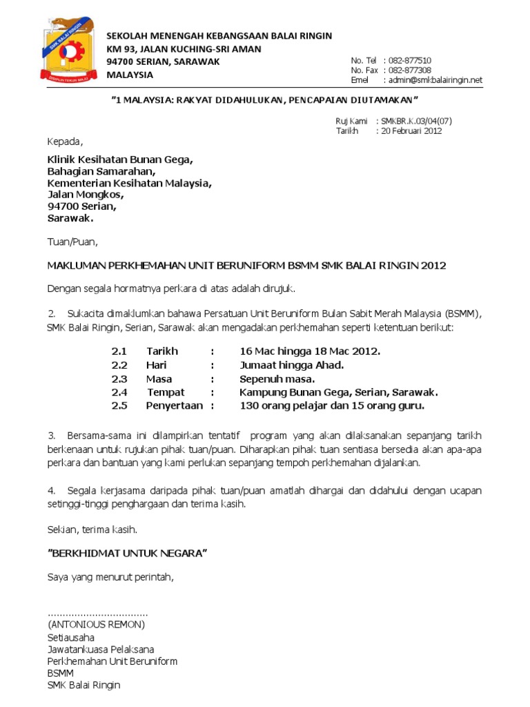 Surat Makluman Kepada Pihak Kesihatan Pdf